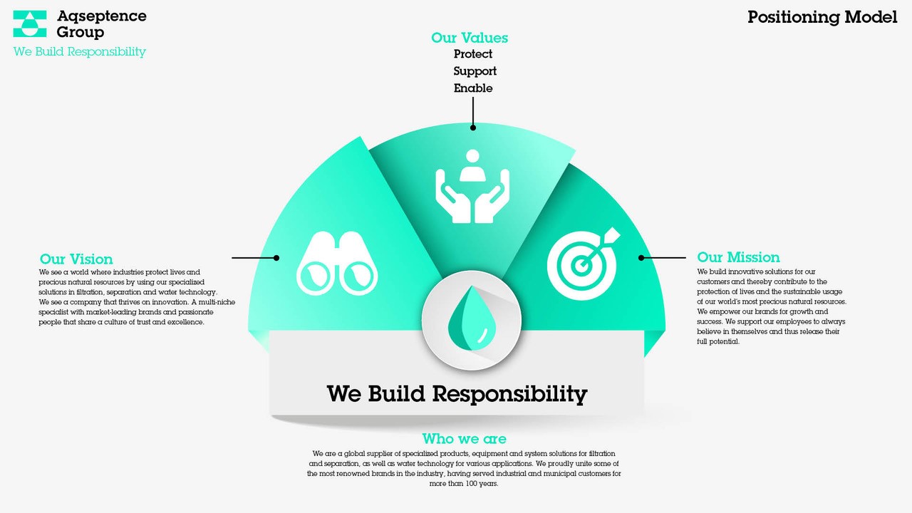 We enable the protection of people and nature through the use of our technologies and thus contribute to the preservation of our most precious natural resource water. We achieve this by working closely with our customers to find best solutions for their challenges in filtration, separation, and water technology. We unite some of the most renowned brands of the industry and are proud enable their growth – and thus the growth of our entire group. Enabling innovation in every layer of the company is key to our future success.